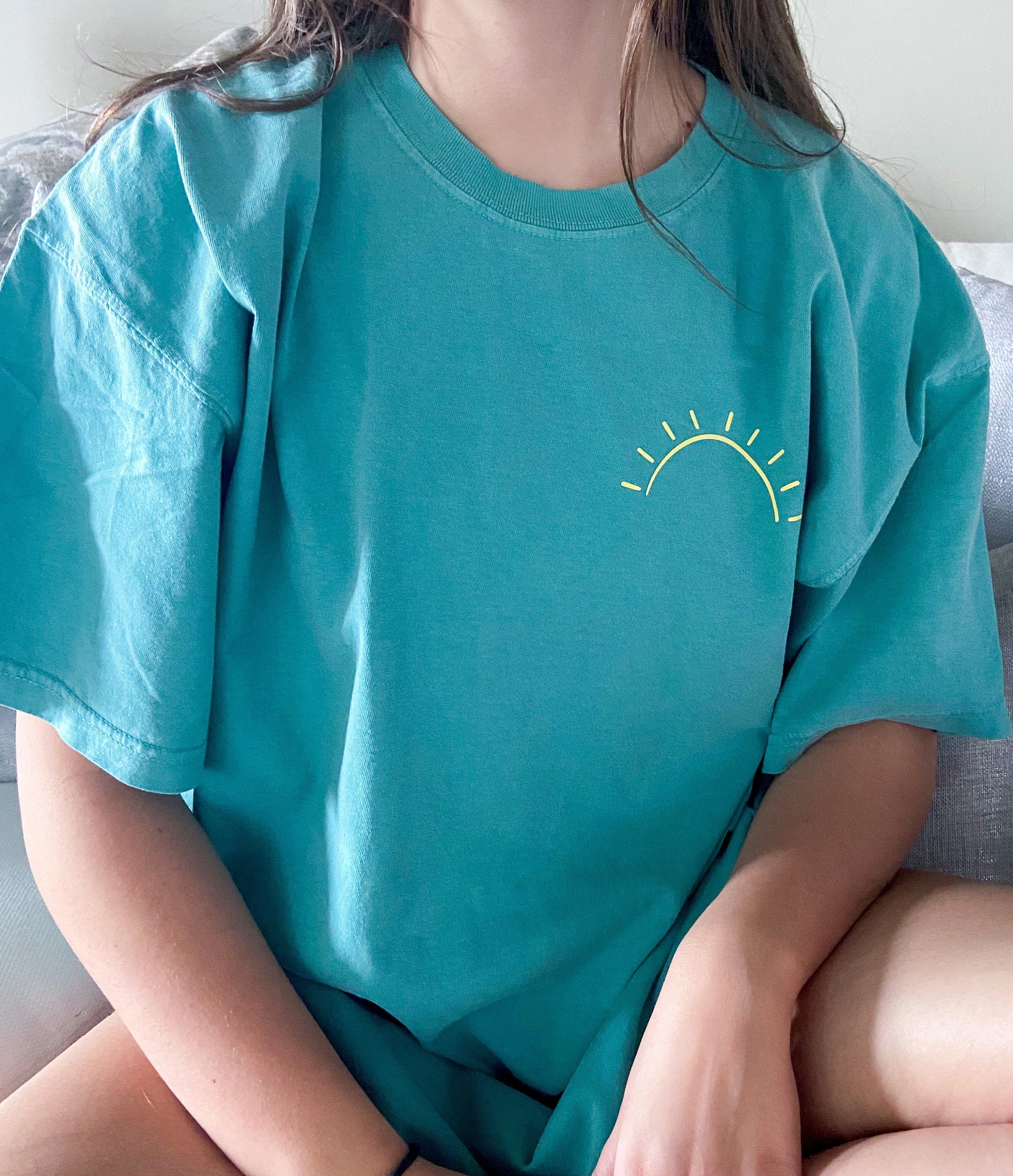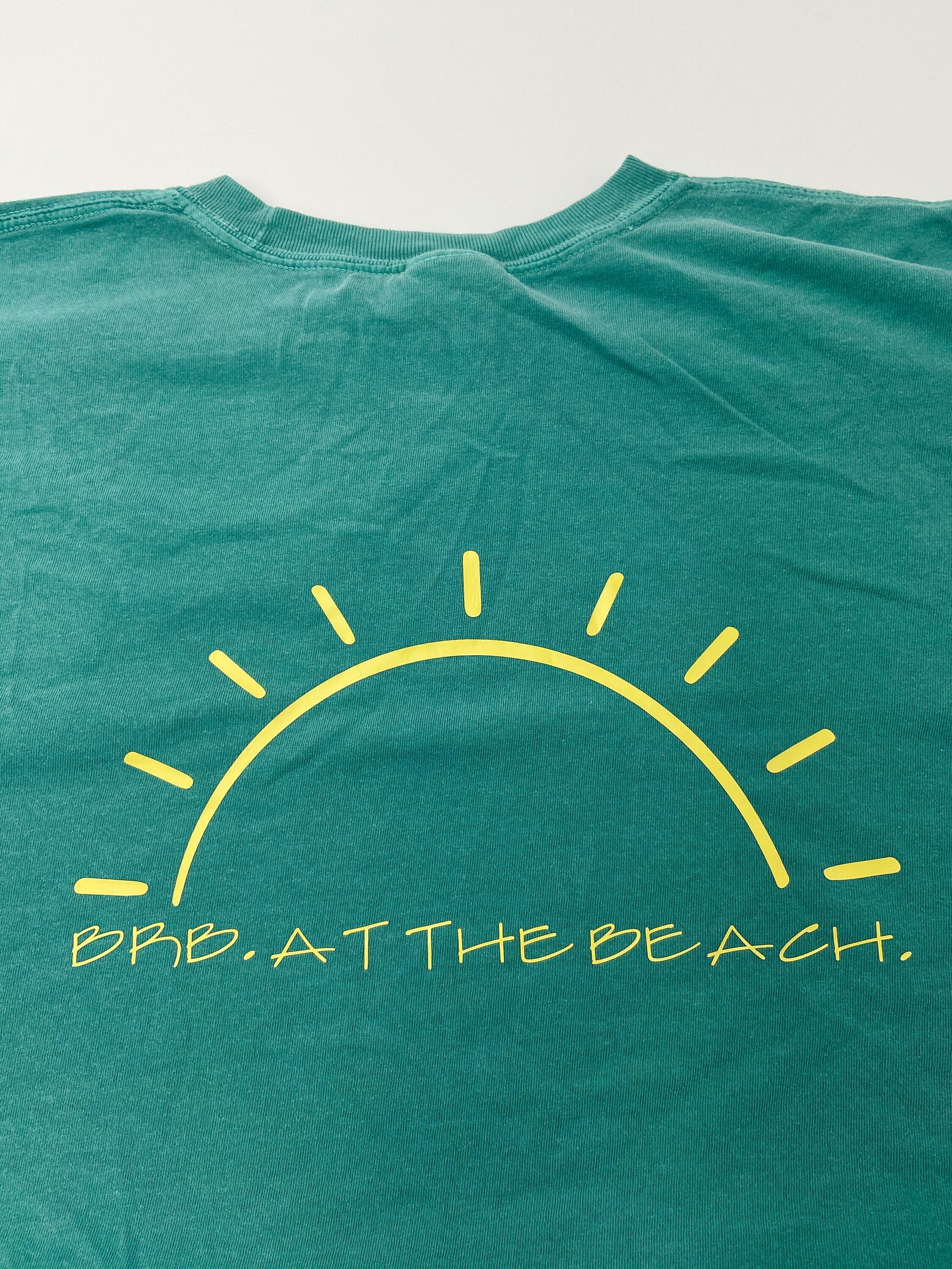 Make a statement with the At the Beach Shirt. Crafted from Comfort Colors' soft cotton fabric, this one-of-a-kind piece features a sun graphic printed on the front and the phrase "Brb. At the Beach." Wear your regular size for a classic fit, or size up for an oversize look.