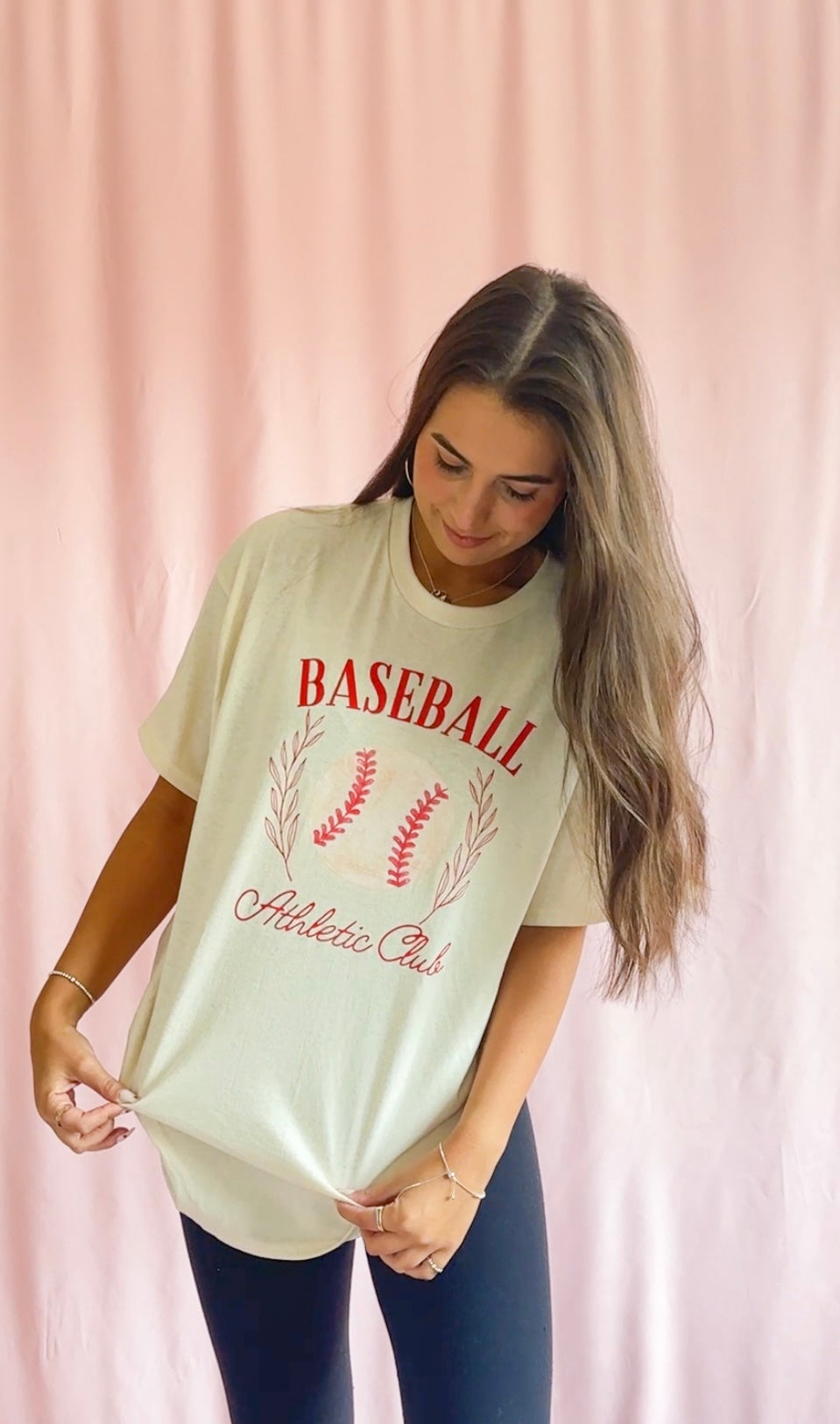 Get ready to hit a home run in style with our Baseball Athletic Club T-shirt. This shirt is perfect for all baseball fans, whether you're rooting for your favorite team or significant other. Made from comfortable and breathable fabric, this t-shirt will keep you cool and comfortable during those intense games. The classic design and high-quality printing make this shirt a standout piece in any sports fan's wardrobe. Show your love for the game and represent your favorite team with this stylish and versatile t-shirt.