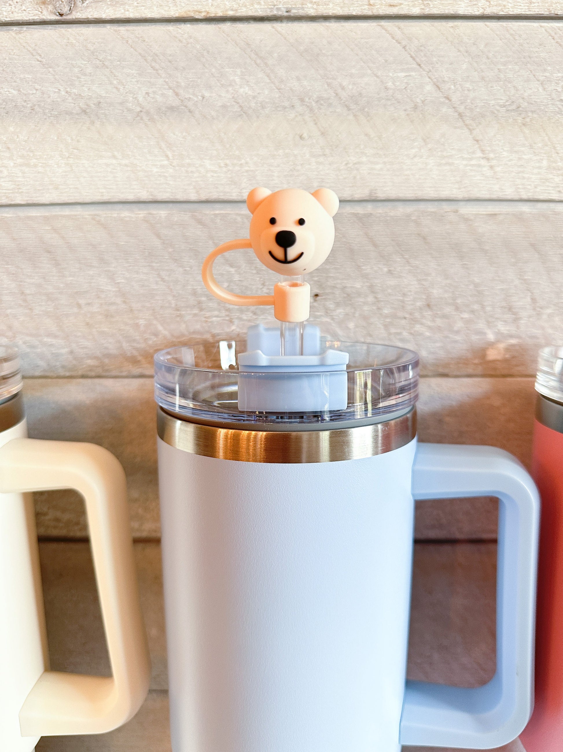 Our Bear Tumbler Straw Topper is a must-have accessory – no more boring straws for you! Get ready to look cute and trendy with this adorable little teddy bear perched atop your favorite beverage. Whether you're sipping juice or a smoothie, you'll be the star of the show!