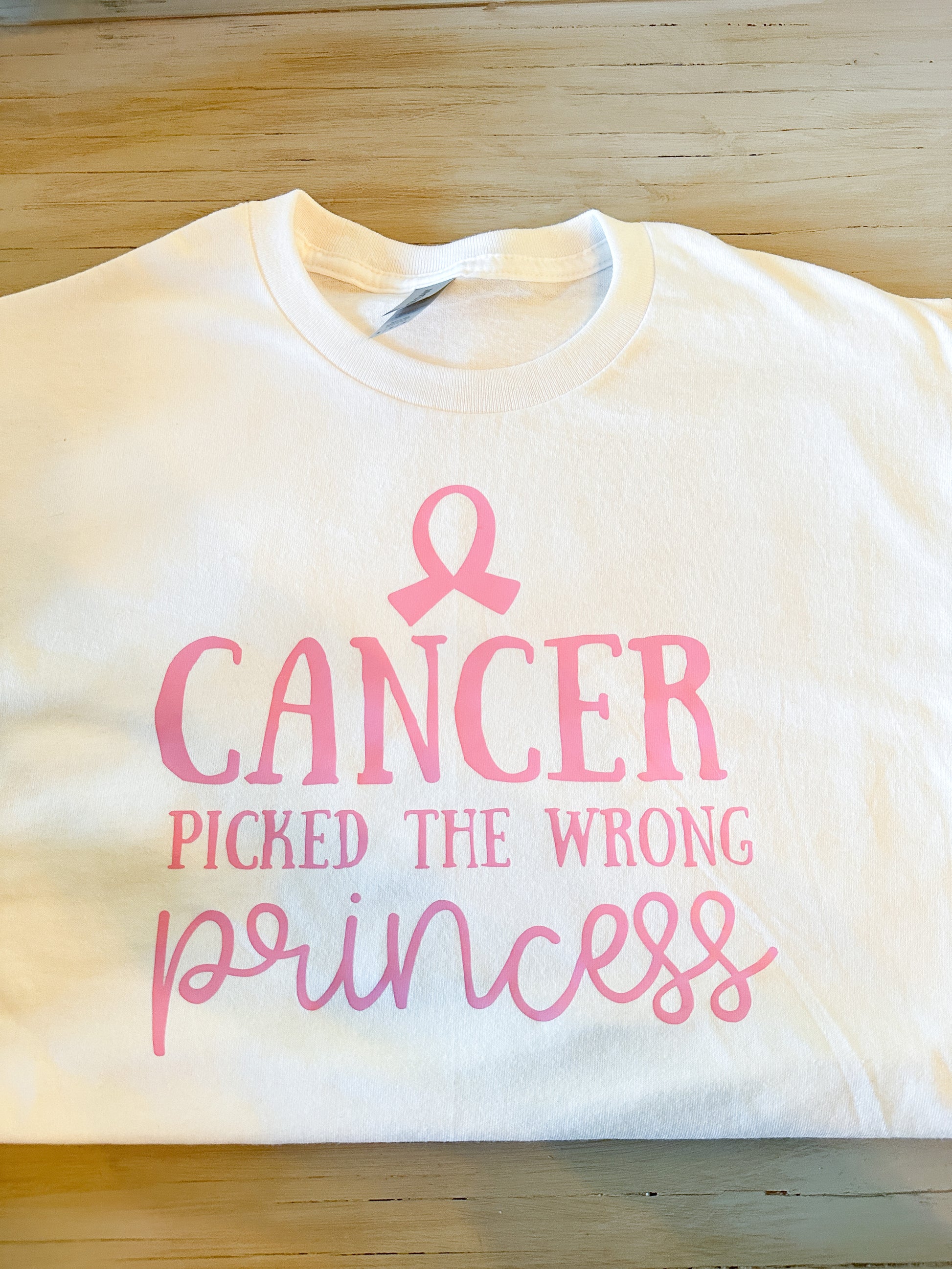 This Cancer Awareness Care Package is the perfect gift for anyone battling breast cancer. The package includes a Cancer picked the wrong princess t-shirt, a ceramic pot with faux pink flowers, a candle, fuzzy socks, a wood sign, a mug with gold spoon, and a burlap bag with a beverage. The pink-themed items are a beautiful reminder of the strength and courage needed to fight this disease. It's the perfect way to show your love and support to someone special.