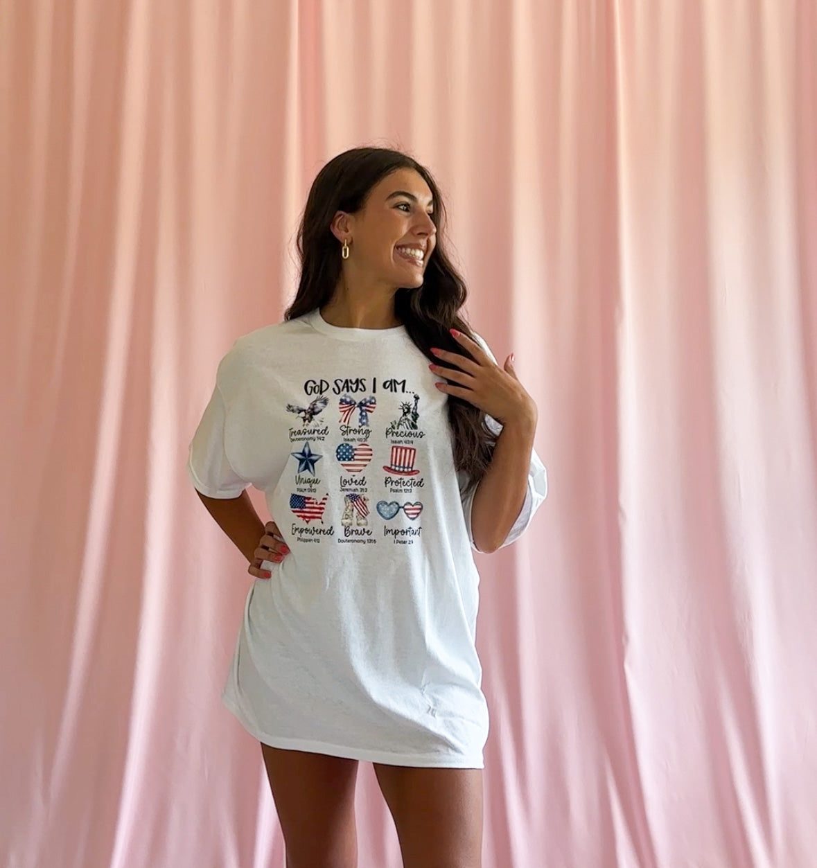 Show off your love for your faith and your country with our Christianity Patriotic Tshirt. This classic and comfortable shirt features a bold and eye-catching design, perfect for any patriotic event or casual outing. Made from high-quality, soft fabric, this tshirt is both stylish and comfortable. The vibrant colors and durable construction make it a must-have for any woman's wardrobe. Whether you're celebrating the 4th of July or just want to express your pride, this Christianity Patriotic Tshirt is the perfect choice.