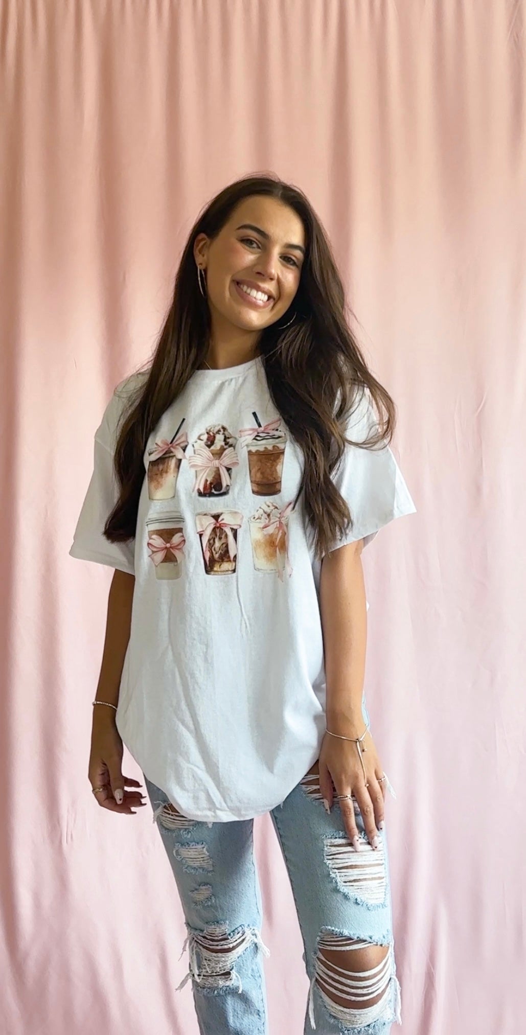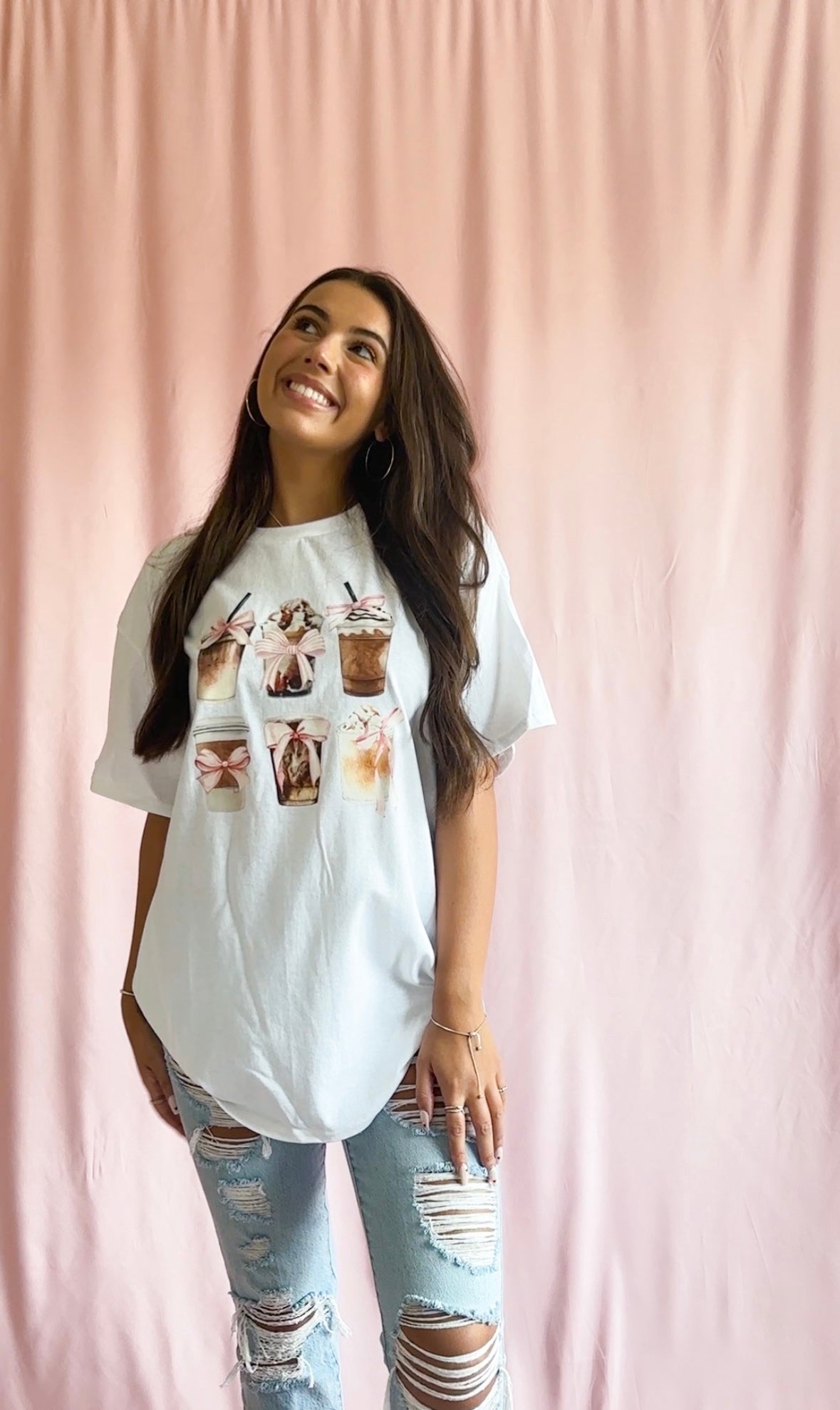 Coquette Coffee Shirt- Women Trendy White Shirt Coffee Cups