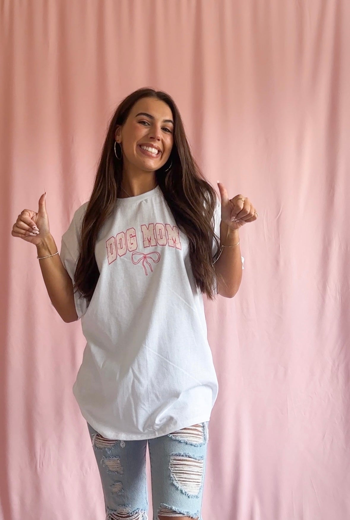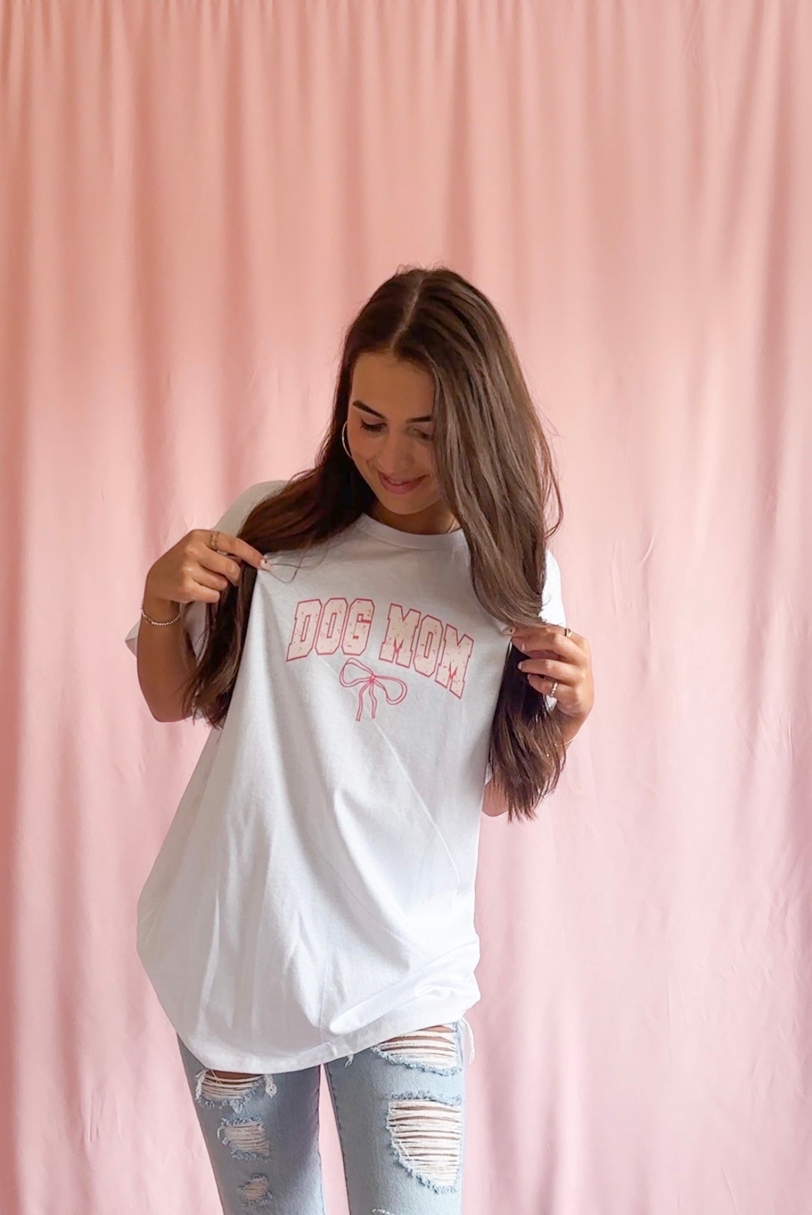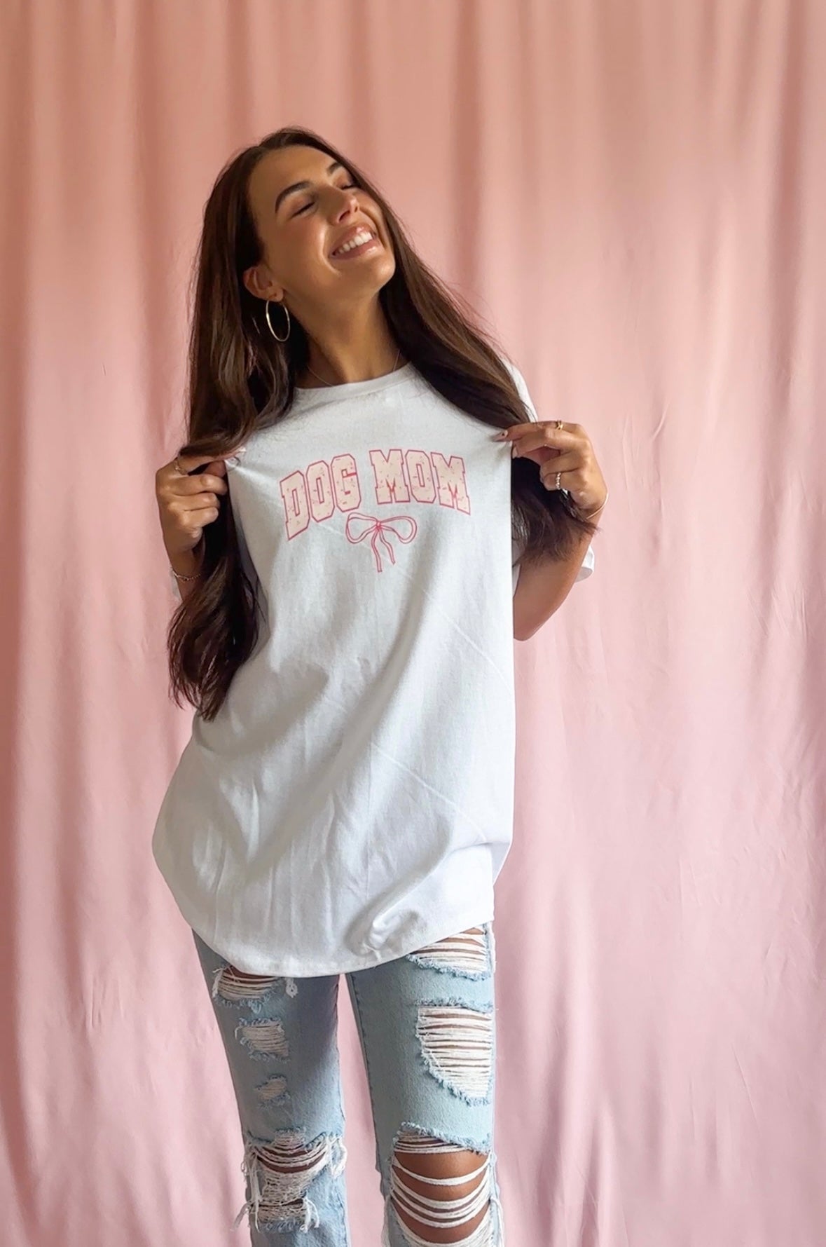 Calling all dog mommas - this Coquette Dog Mom T-shirt is a must-have for you! Whether you're taking your furry friend for a walk in the park or just lounging at home, this shirt is the perfect way to show off your love for your pup. The pink bow graphic adds a cute and stylish touch, making it a versatile piece for any casual outing. Made with soft and comfortable fabric, this t-shirt is not only adorable but also practical for everyday wear. Treat yourself or surprise a fellow dog momma with this adorable and trendy t-shirt!