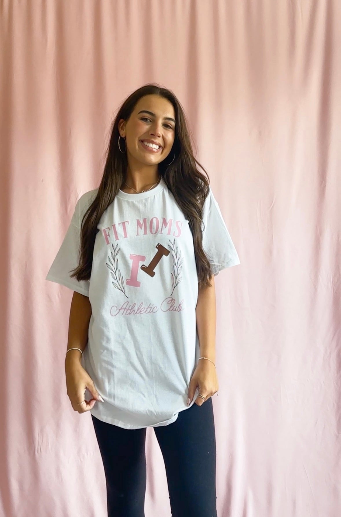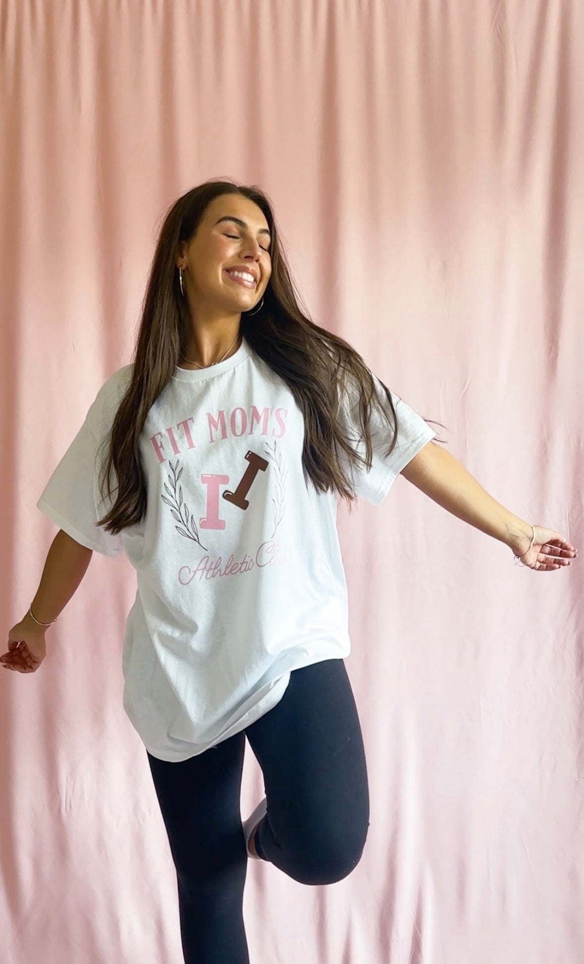 Are you a momma who loves to work out? Then this shirt is for you. The Fit Moms Athletic Club shirt is perfect for any active mother who wants to stay in shape and look great while doing it. Featuring pink weights and a sleek pink design, this shirt is a great way to show off your dedication to fitness. Not only is this shirt comfortable, but it's also stylish and can help motivate other mommas to be fit like you. Whether you're hitting the gym, going for a run, or just running errands, this shirt is a great way to show off your active lifestyle.