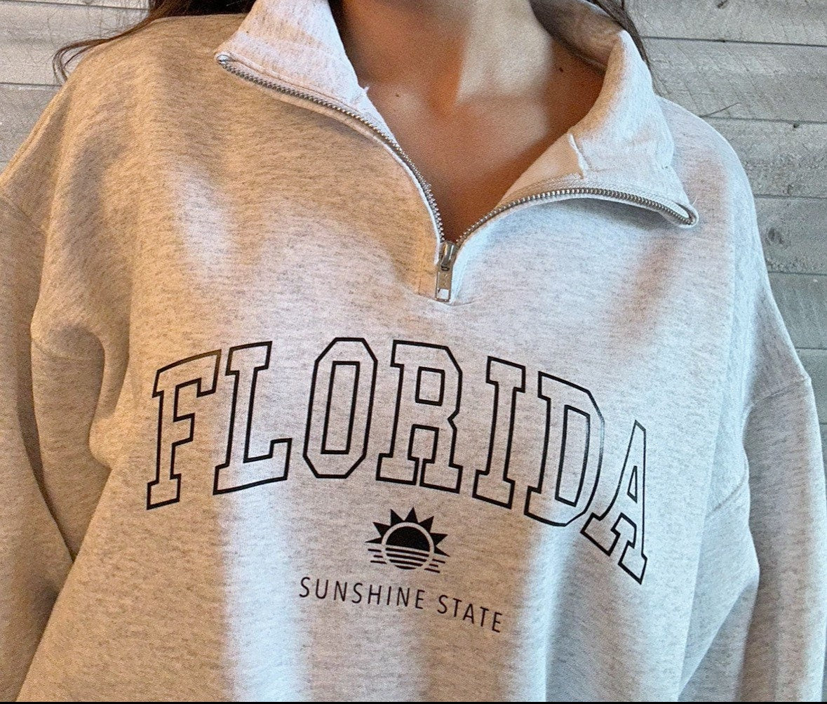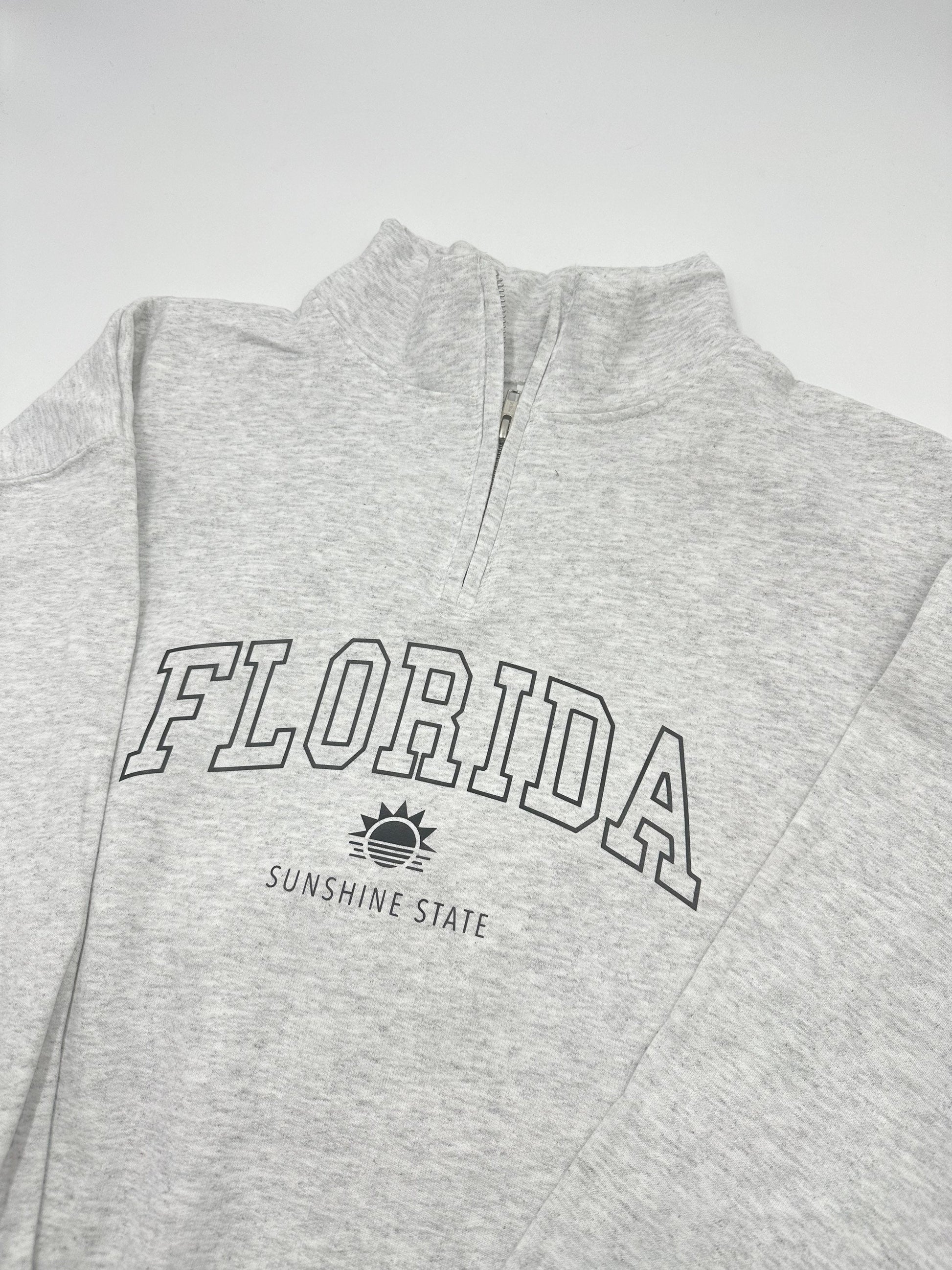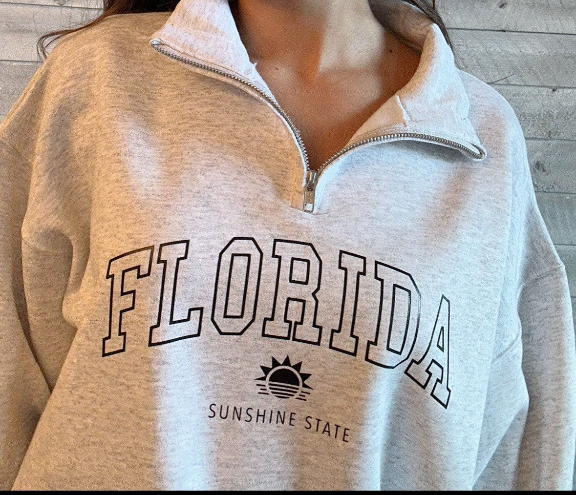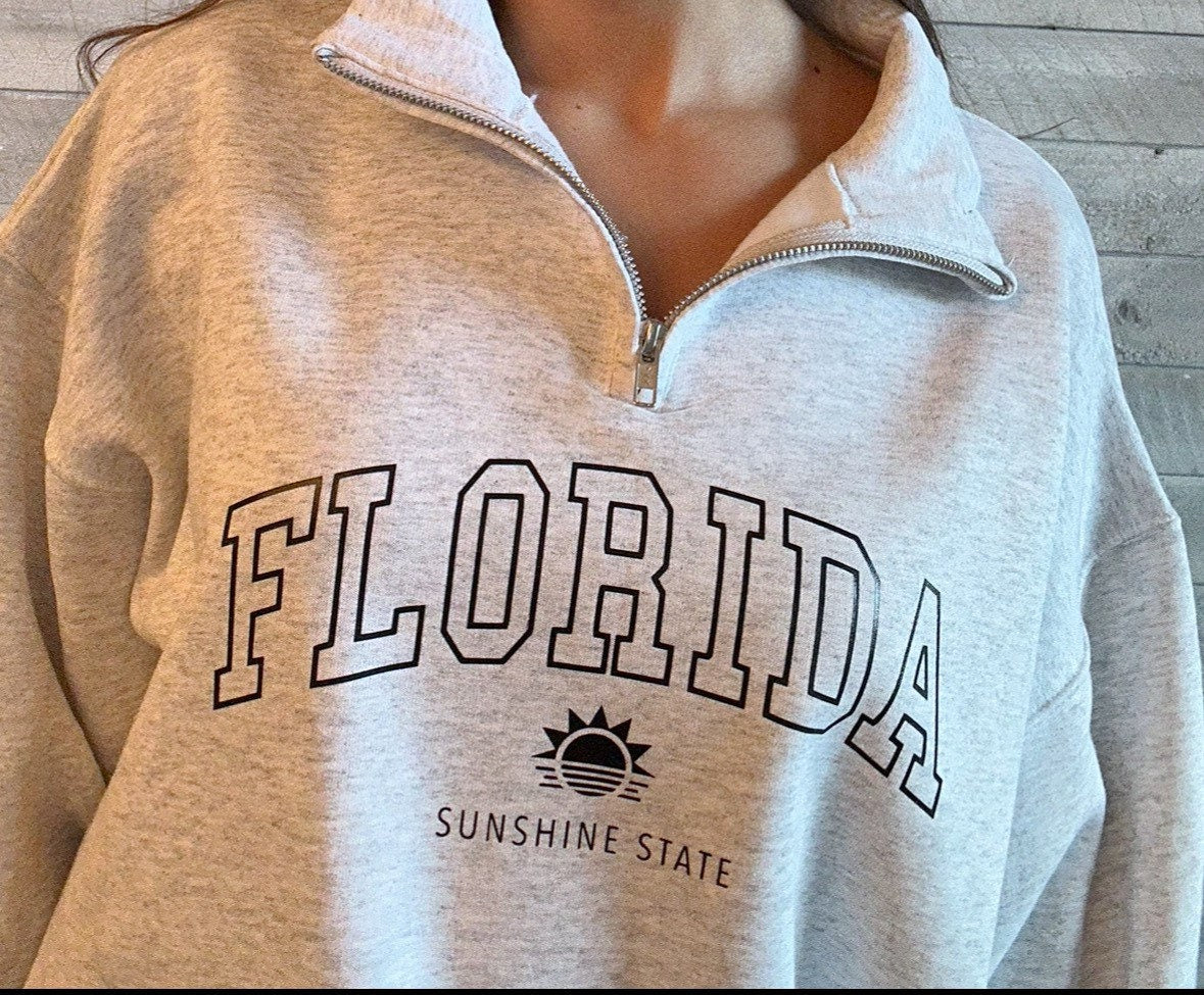 Stay warm and stylish with our Florida Quarter Zip Sweatshirt! Made with a cozy zip-up design, this sweatshirt is perfect for chilly days. Select your perfect fit from our size options. Show off your love for Florida in comfort and style!
