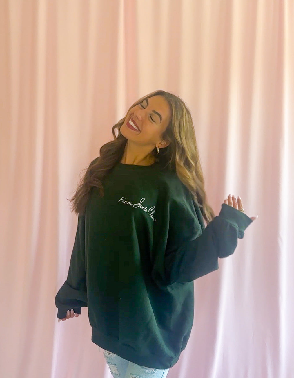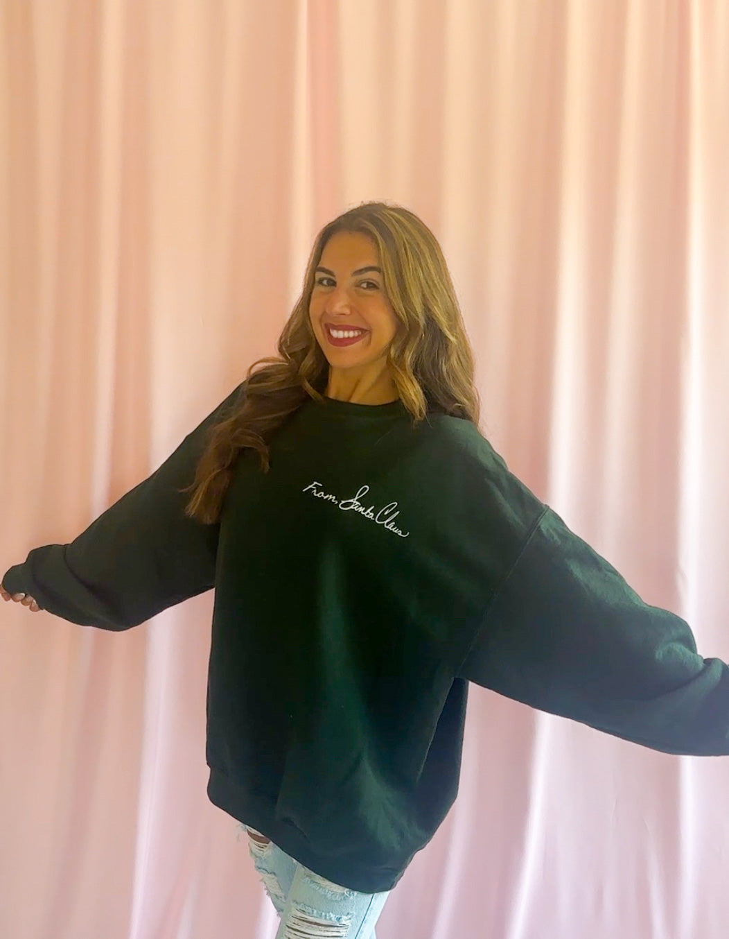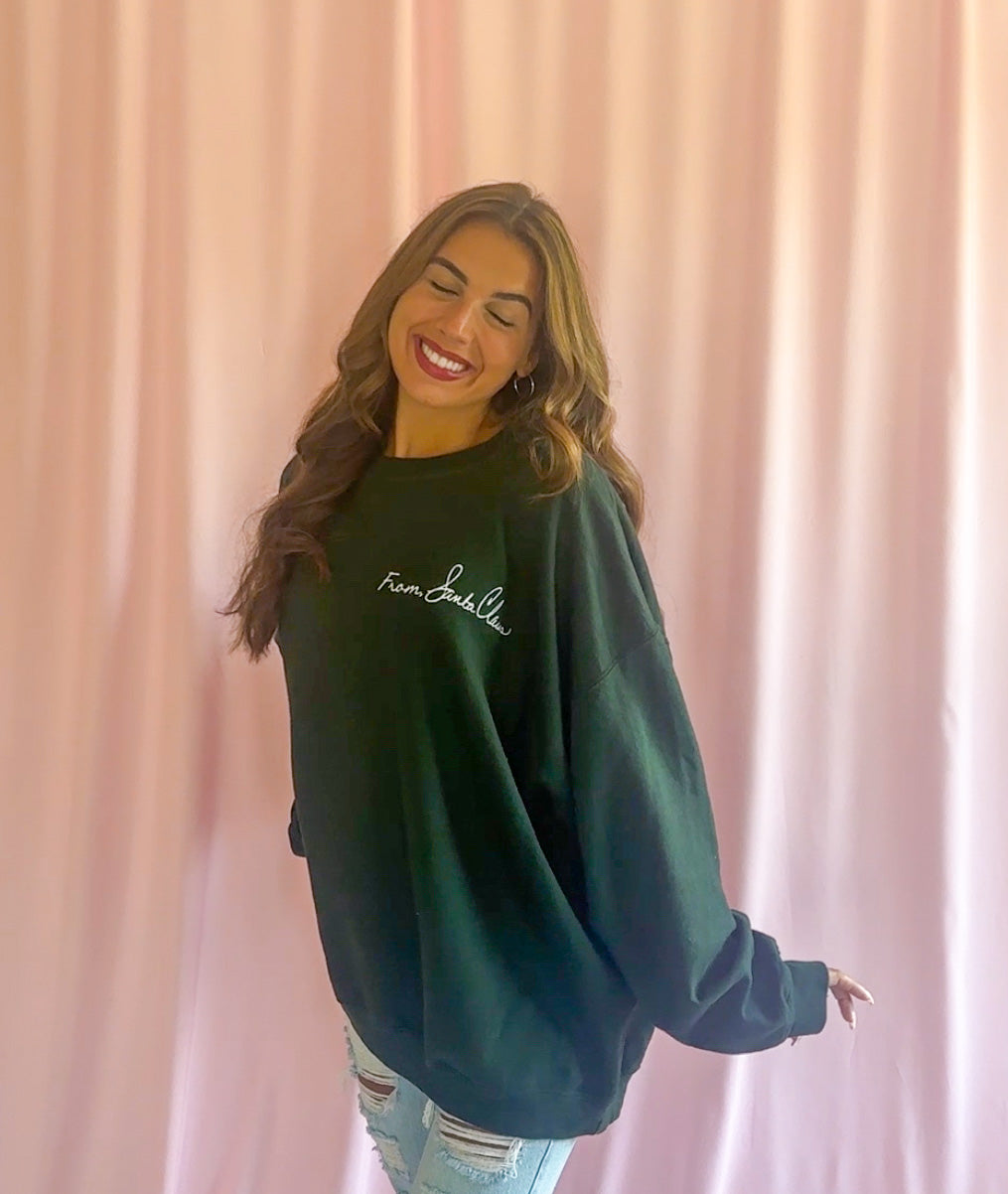 Celebrate the magic of the season with our Green Christmas Sweatshirt "From Santa Claus" from GabsDoodleBugDesigns! Crafted from premium, cozy fabric, this festive sweatshirt brings joy and warmth to your holiday attire. Perfect for family gatherings, holiday parties, or a cozy night in, it captures the timeless charm of Christmas. Slip into holiday spirit and make every moment merry and bright with this delightful piece. Get yours today and embrace the cheer from Santa Claus himself!