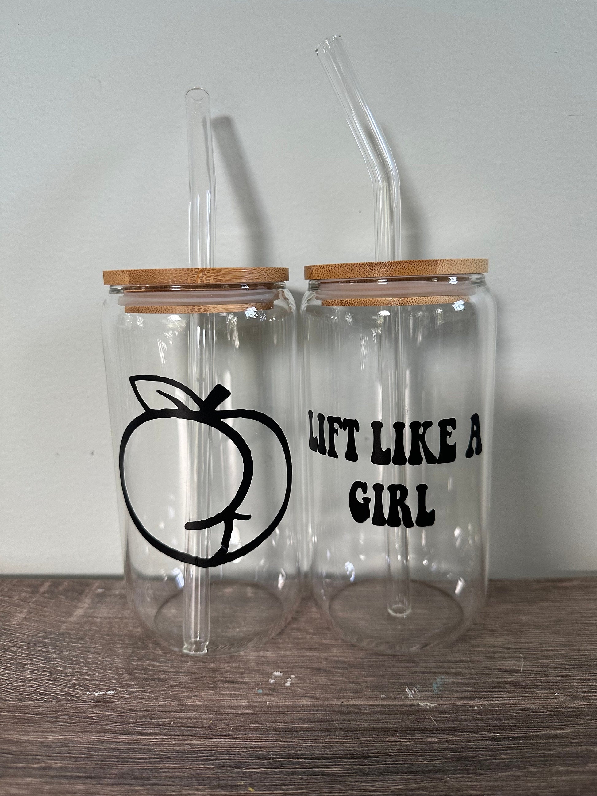 Gym themed 16 oz clear reusable mugs with lid and straw! Gift this beautiful glass to yourself or someone you love ❤️.