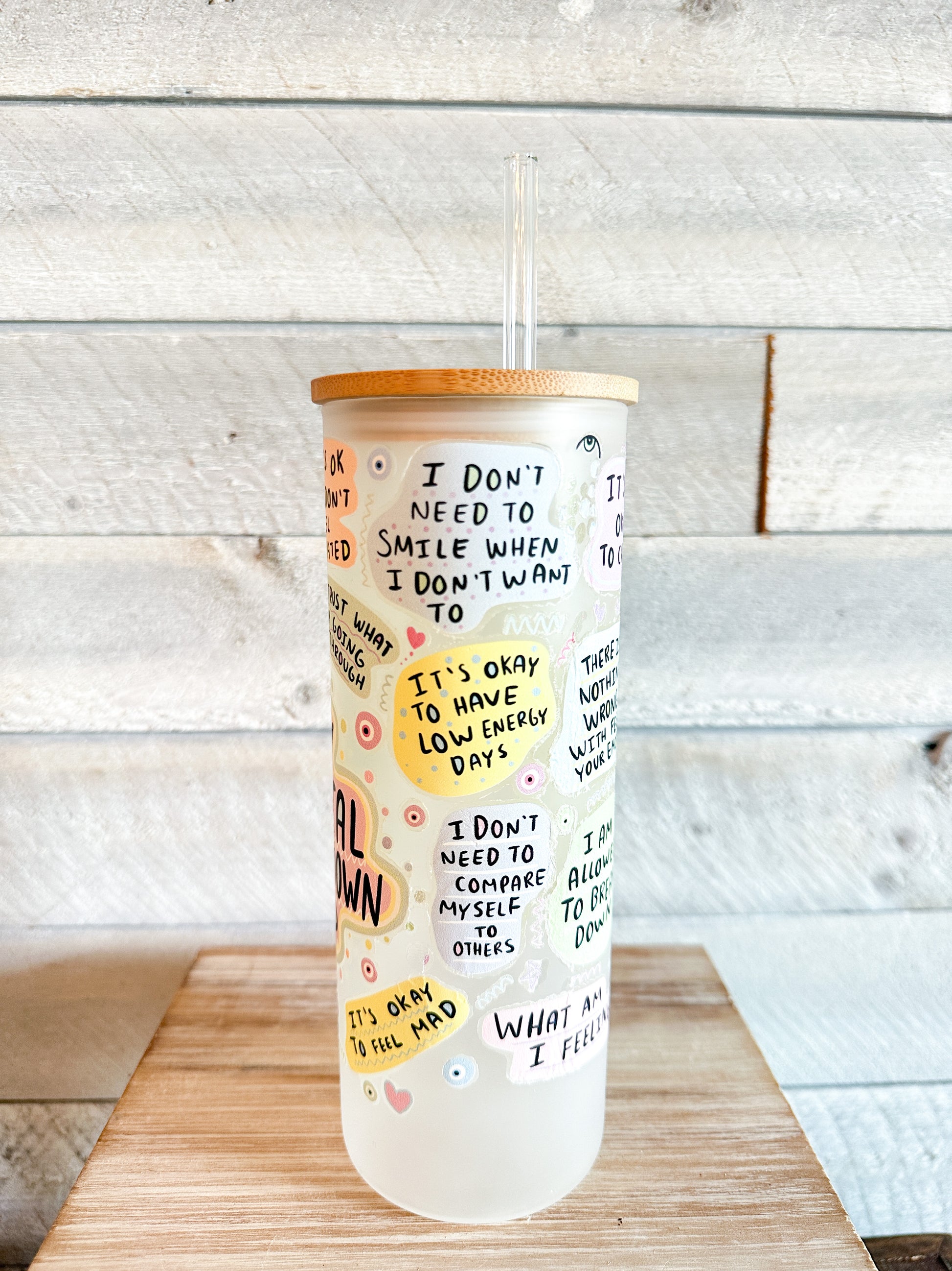 Introducing the My Mental Breakdown Cup 25oz frosted tumbler, designed to uplift and inspire you on even the most challenging days. This tumbler features a sleek frosted design with a secure lid, ensuring your beverages stay hot or cold for hours. With positive affirmations emblazoned on the exterior, this tumbler serves as a daily reminder to stay positive and grounded, no matter what life throws your way. Whether you're sipping on your morning coffee or enjoying a refreshing iced tea, this durable and stylish tumbler is the perfect companion for your hectic schedule. Embrace a more positive mindset with the My Mental Breakdown Cup 25oz frosted tumbler.