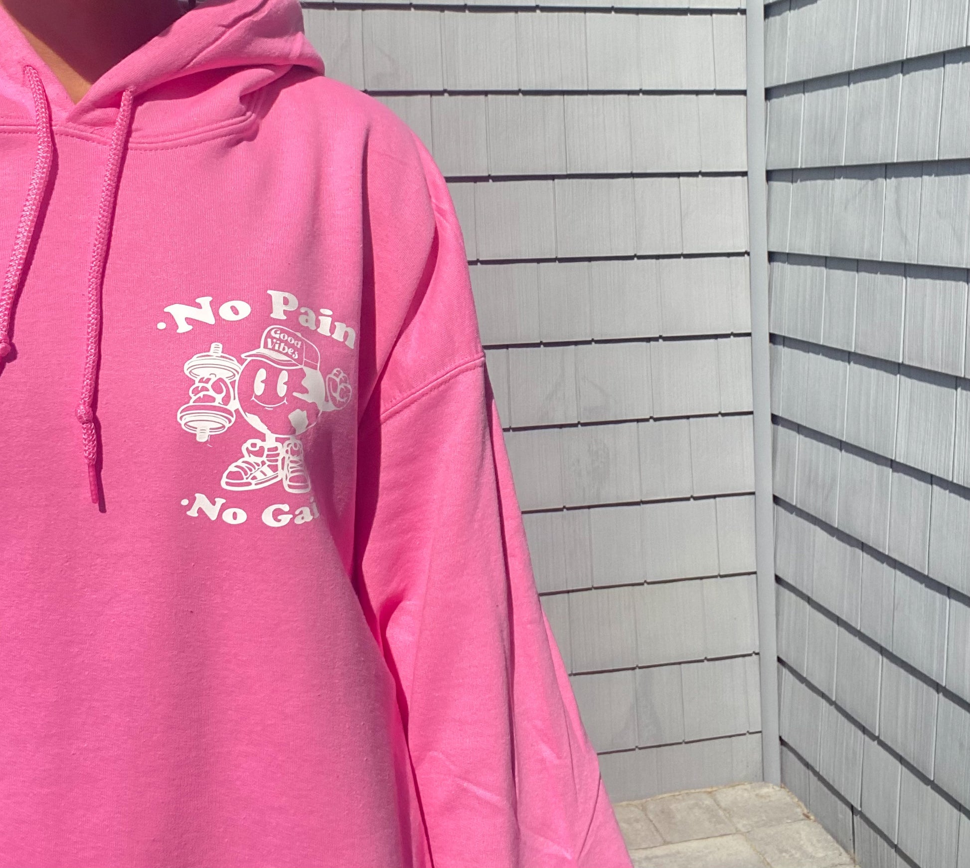 The No Pain No Gain Hoodie is the perfect addition to your gym wardrobe. Available in pink, black, or white, this sweatshirt is both stylish and functional. Made with high-quality materials, it's comfortable to wear and can withstand even the toughest workouts. The bold "No Pain No Gain" slogan on the front will keep you motivated and focused on your fitness goals. Grab one today and push yourself to the next level