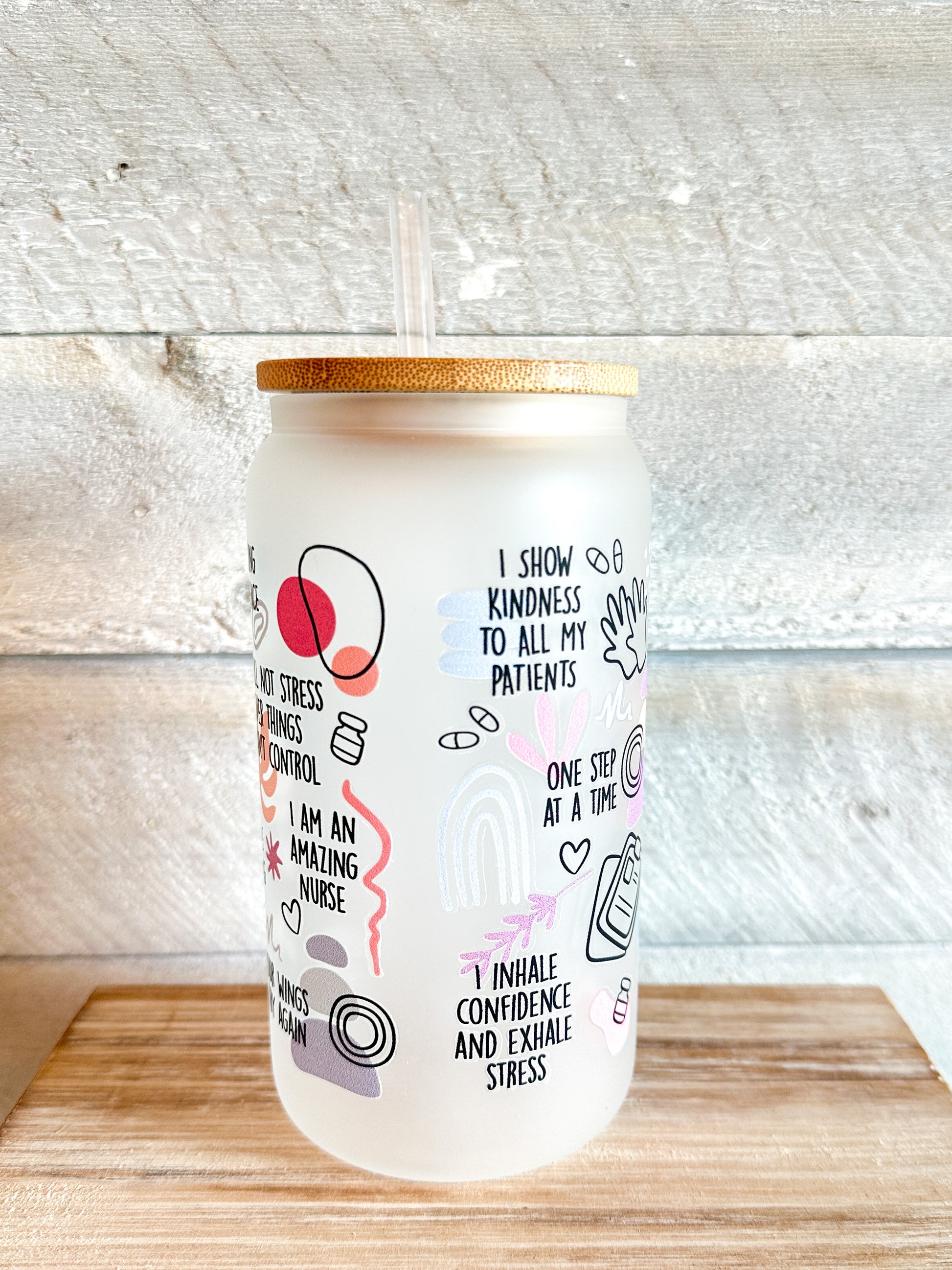 Introducing our Nurse Daily Affirmations Frosted Tumbler, a must-have for any nurse on the go. This 16 oz tumbler is perfect for keeping your favorite beverages cold or hot throughout your shift. The frosted exterior gives it a sleek and modern look, while the nurse affirmations printed on the tumbler serve as a daily reminder of the impact and importance of your work. Made with durable materials and a spill-proof lid, this tumbler is designed to withstand the demands of a nurse's busy lifestyle. Treat yourself or a fellow nurse to this empowering tumbler and elevate your daily routine.