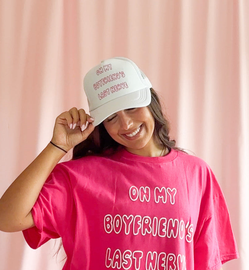 On my Boyfriend's Last Nerve White Trucker Hat Women