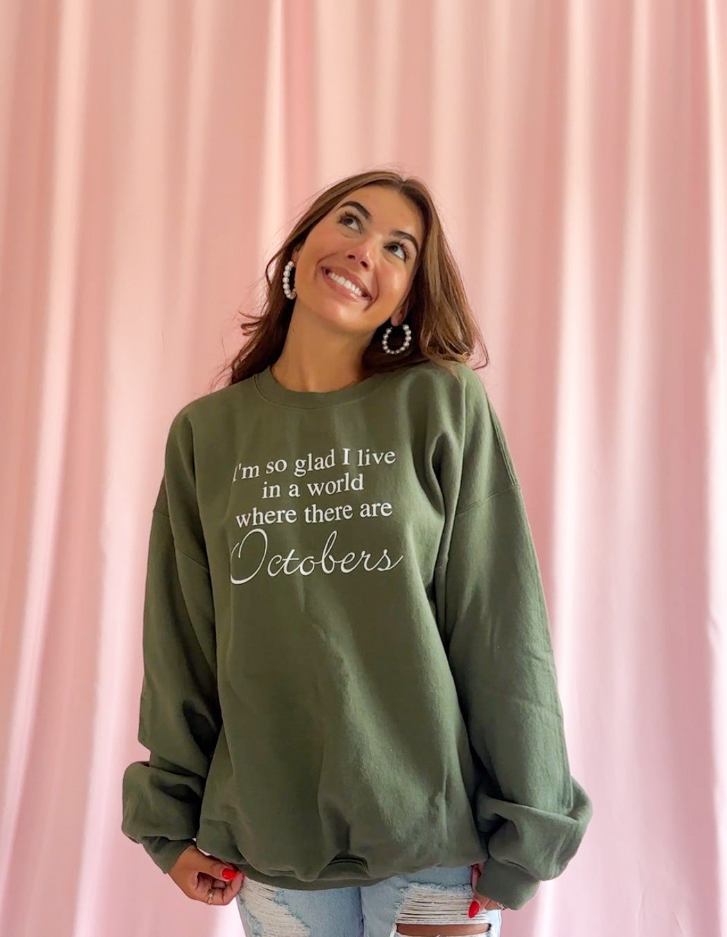 Get into the spirit of fall with our Pumpkin Spice Collegiate Sweatshirt. This cozy and stylish sweatshirt is perfect for those crisp autumn days, featuring a warm and rich pumpkin spice color that will instantly put you in the mood for the season. Made with a soft and comfortable fabric, this sweatshirt is ideal for lounging or wearing to your favorite fall activities. For an oversized and relaxed look, we recommend sizing up in this sweatshirt. Pair it with your favorite jeans and boots for a classic autumn look that's sure to turn heads. Embrace the season in style with our Pumpkin Spice Collegiate Sweatshirt.