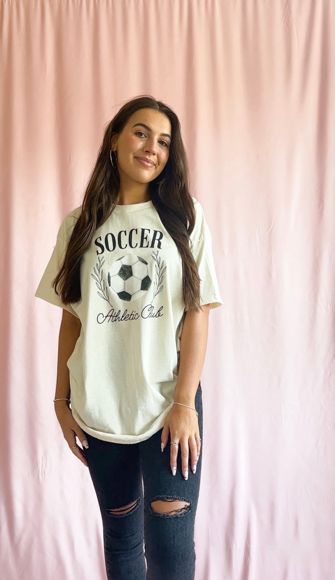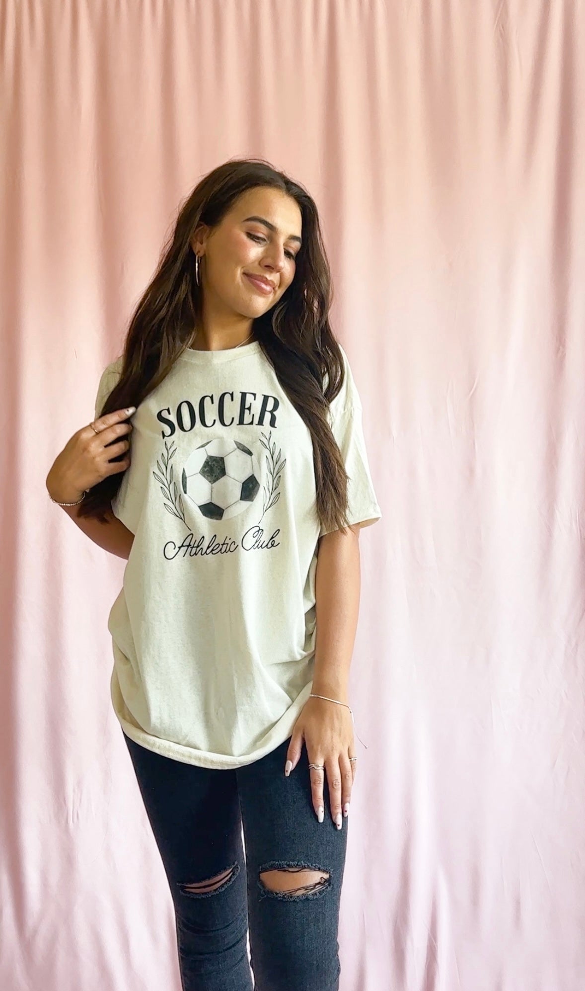 Get ready to show off your team pride with this stylish Soccer Athletic Club T-shirt made just for women. Whether you're heading to an away game or just hanging out with your teammates, this adorable t-shirt is the perfect way to sport your love for soccer. Made from a comfortable and breathable fabric, this t-shirt is designed to keep you cool and comfortable during all your soccer activities. The trendy design and flattering fit make it a must-have addition to any soccer fan's wardrobe. Don't miss out on the chance to showcase your team spirit in style with this Soccer Athletic Club T-shirt.