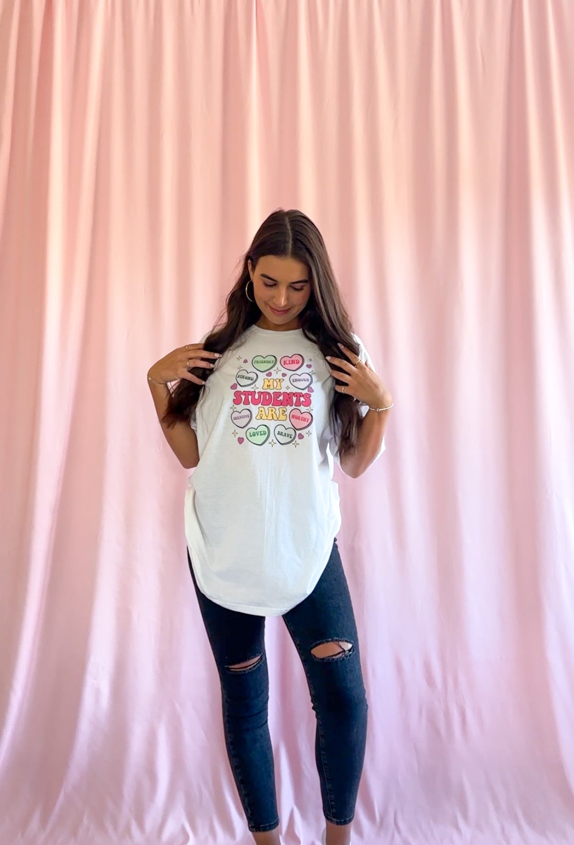 Attention all teachers! Show your students just how much you appreciate them with our Student Appreciation T-shirt. Each heart on the shirt is listed with a special characteristic, reminding your students just how remarkable they are. Brighten your student's day and let them know how much they are loved and valued with this comfortable and stylish t-shirt. Perfect for casual Fridays or dress down days, this shirt is a must-have for every teacher looking to show their students some extra love and appreciation. Available in a variety of sizes and colors, so you can find the perfect fit for your wardrobe.