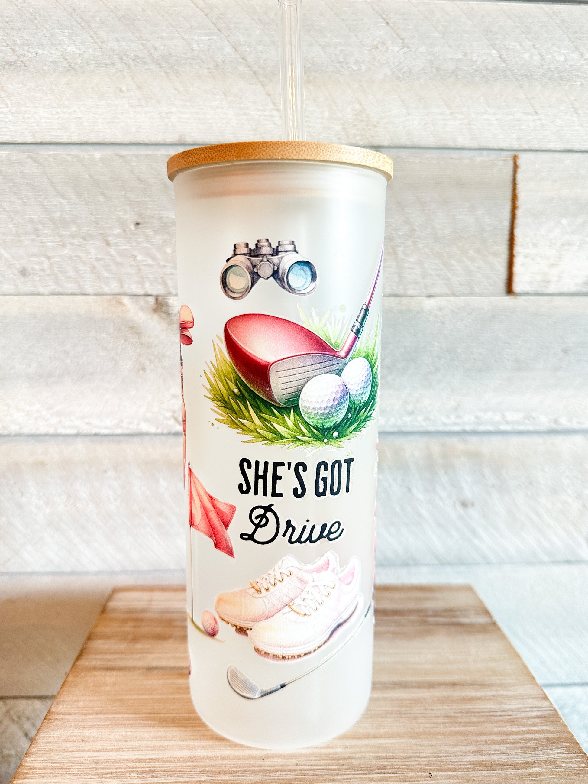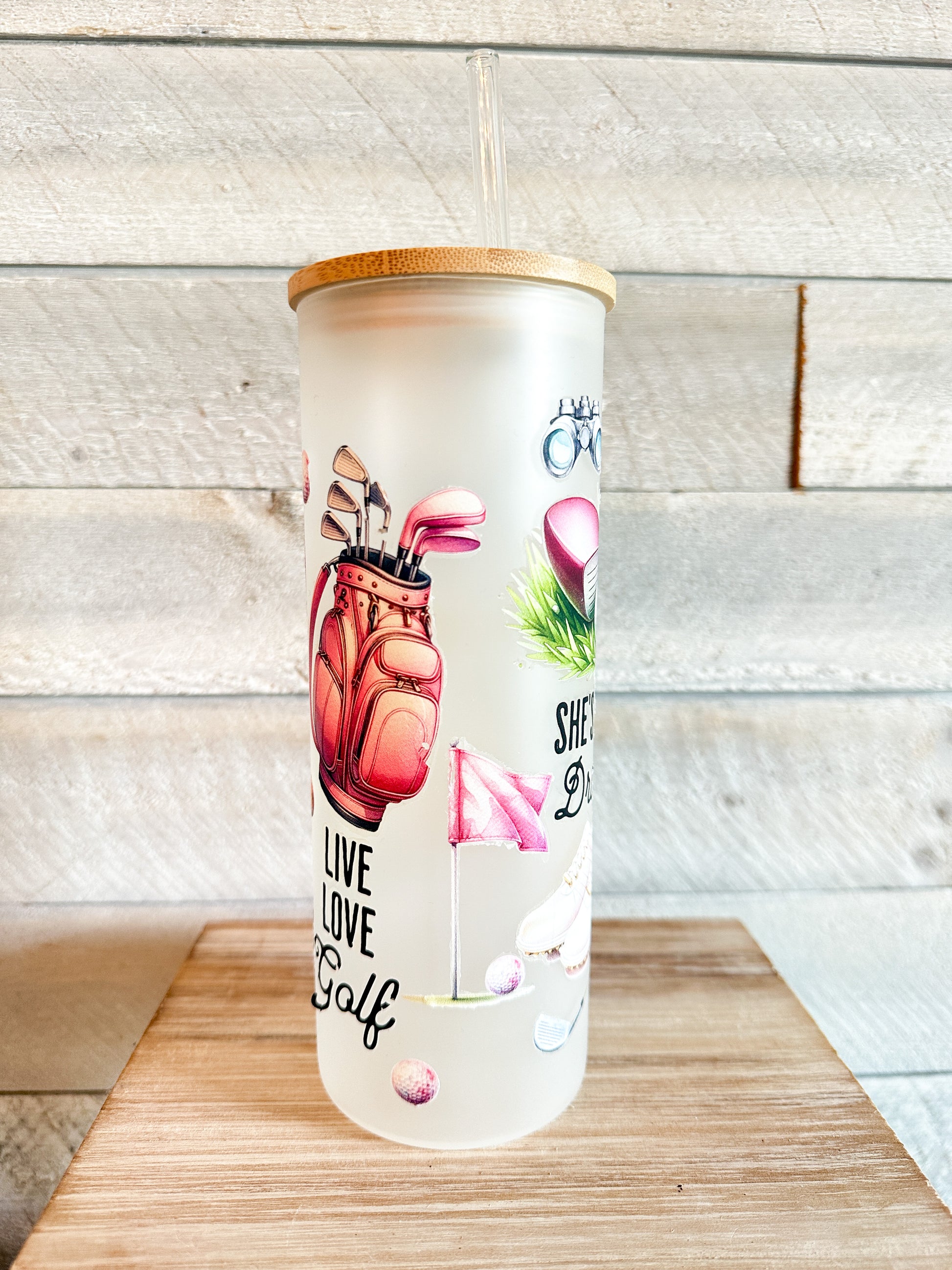 This women's golf frosted tumbler is the perfect accessory for any female golfer. With a 25 oz capacity, it's the ideal size to keep you hydrated on the course. The frosted design gives it a sleek and modern look, while the golf graphic designs add a touch of style. Whether you're hitting the links or just running errands, this tumbler will keep your favorite beverage at the perfect temperature. Treat yourself or the golfer in your life to this stylish and practical tumbler.